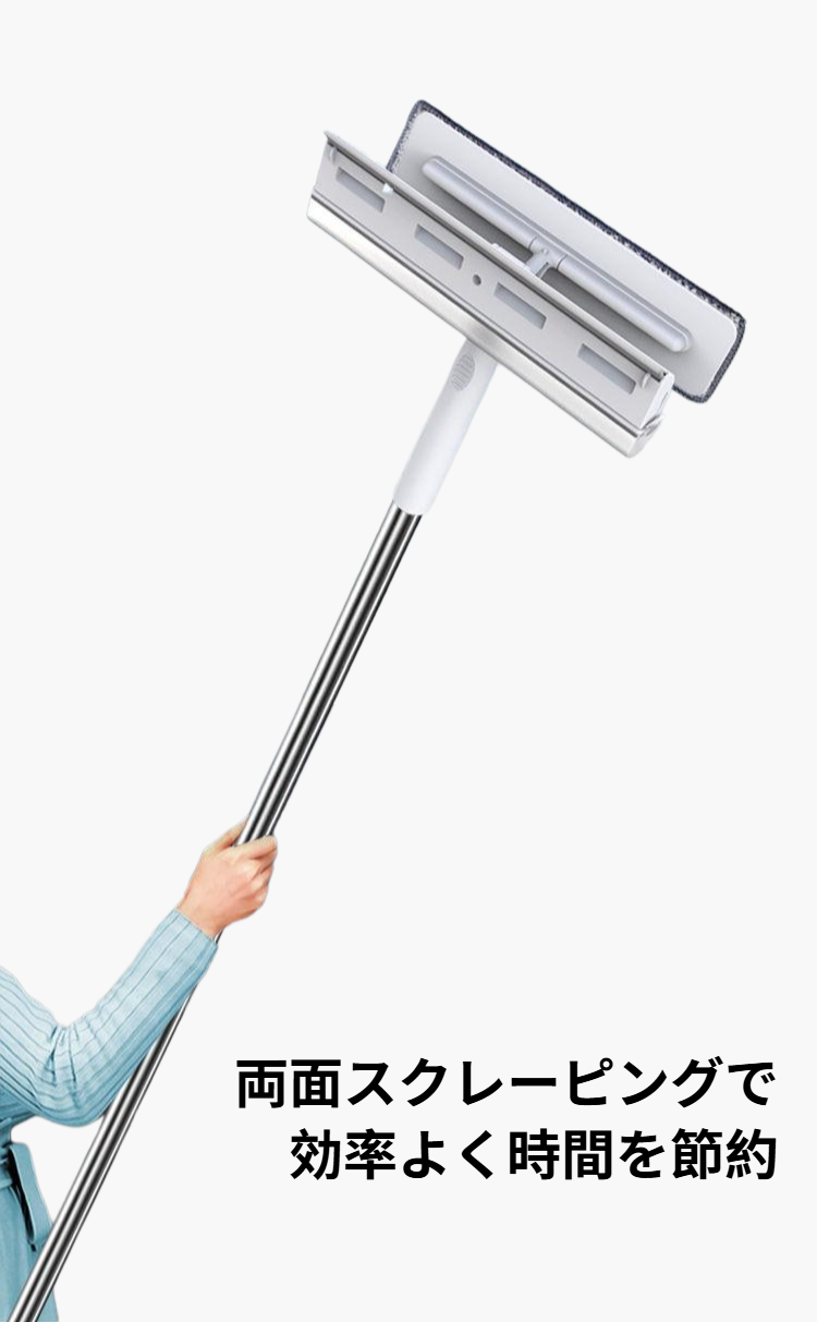 窓掃除用具|伸縮式ハンドルで高所も簡単清掃。マイクロファイバー採用で汚れをしっかりキャッチ。取り外し可能で手入れも簡単。